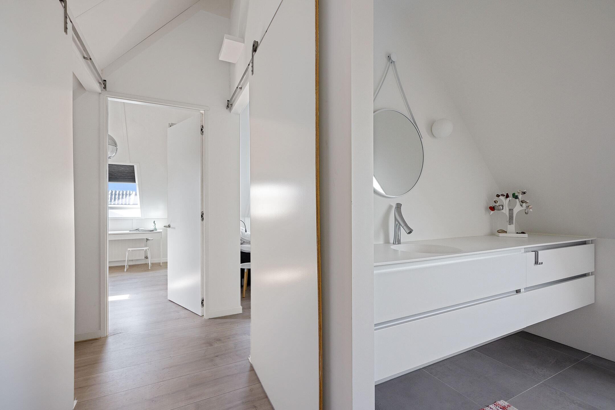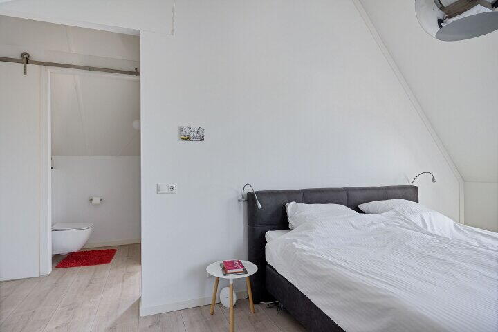 Via de vaste trap kom je op de tweede woonlaag, hier is een berging waar ook de installaties zijn, een separaat toilet, de hoofdslaapkamer en tweede slaapkamer en uiteraard een badkamer. De badkamer is tevens zeer luxe afgewerkt met onder andere een heerlijk comfortabele sun shower en grote inloopdouche.