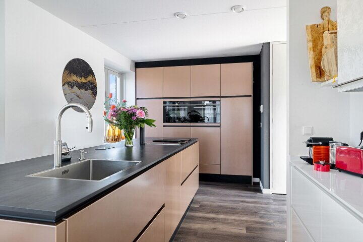 Tijdens de bouw konden er nog speelse keuzes gemaakt worden, hierdoor is een hele fijne indeling ontstaan, daarnaast is er met de afwerking gekozen uit allemaal hoogwaardige materialen en strakke afwerkingen waar je ook bent in het appartement.
